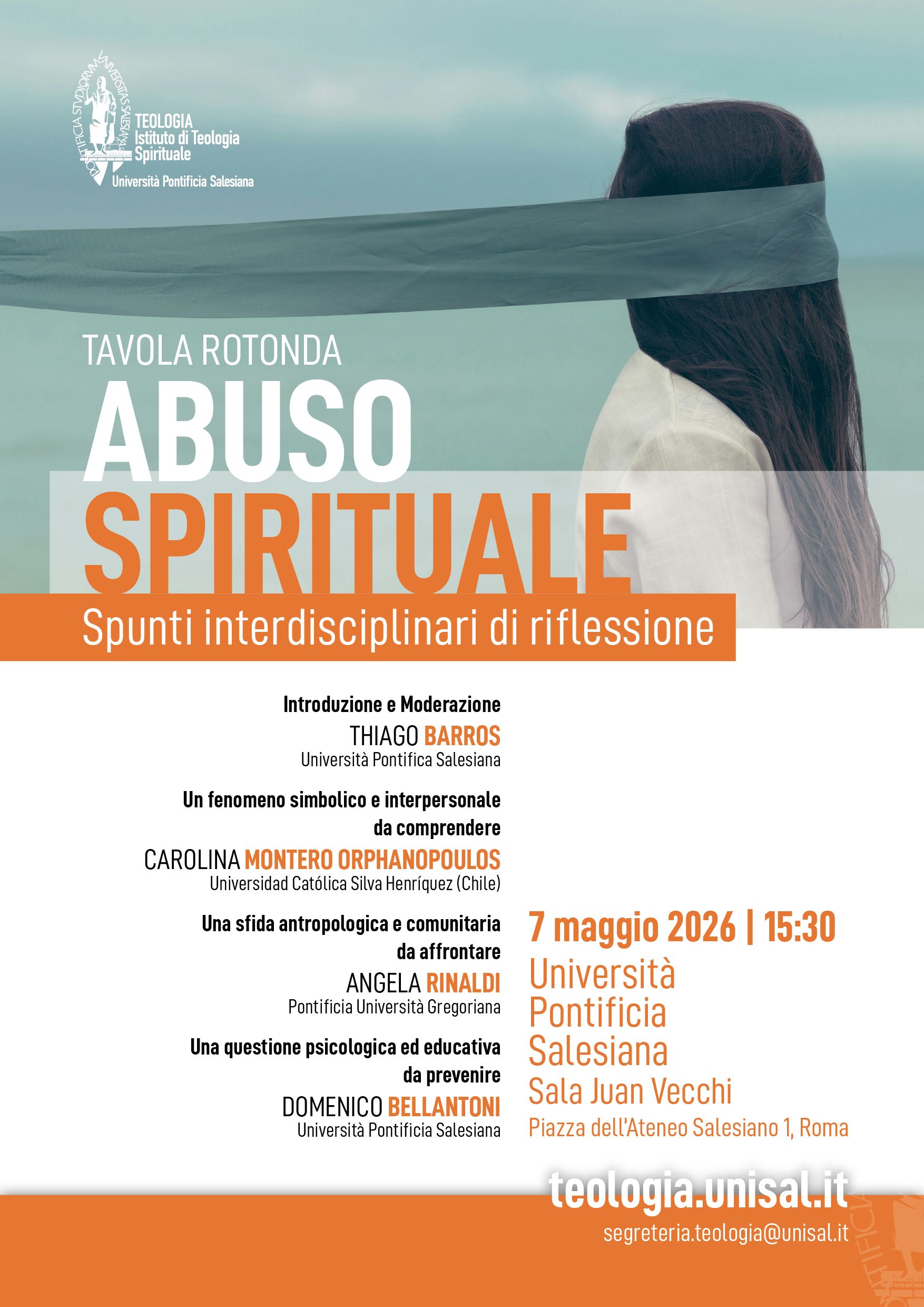 Abuso spirituale. Spunti interdisciplinari di riflessioneTavola rotonda dedicata al tema dell’abuso spirituale, affrontato da prospettive simboliche, antropologiche, psicologiche ed educative. Sala Juan Vecchi 15:30 |