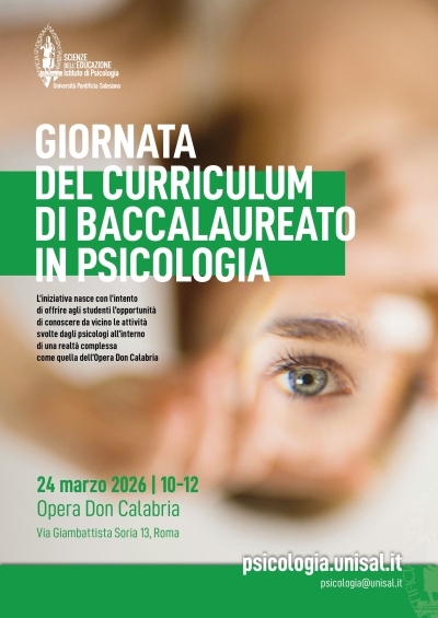 Giornata del curriculum di Baccalaureato in PsicologiaL’iniziativa nasce con l’intento di offrire agli studenti l’opportunità di conoscere da vicino le attività svolte dagli psicologi all’interno di una realtà complessa come quella dell’Opera Don Calabria. Opera Don Calabria 10:00 - 12:00 |