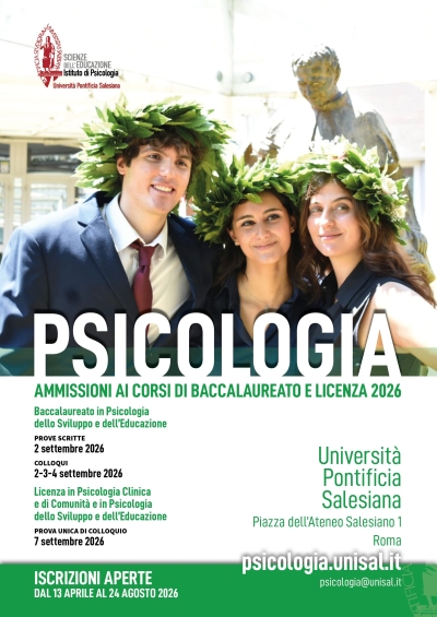Termine iscrizioni per l'esame di ammissione ai corsi di Baccalaureato e Licenza in PsicologiaDal 13 aprile al 24 agosto 2026 è possibile iscriversi all'esame di ammissione per i corsi di Baccalaureato e Licenza in Psicologia. |